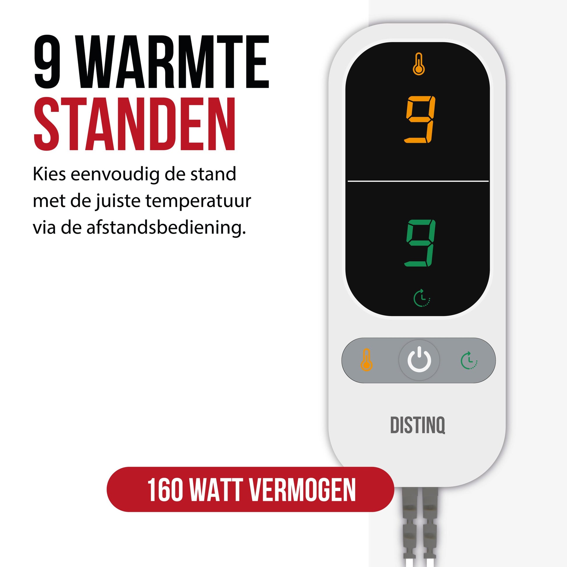 Compared to other blankets, where the threads stop up to 35 cm from the edge, the DistinQ® blanket offers more comfort across the entire surface. - Smart timer up to 9 hours
