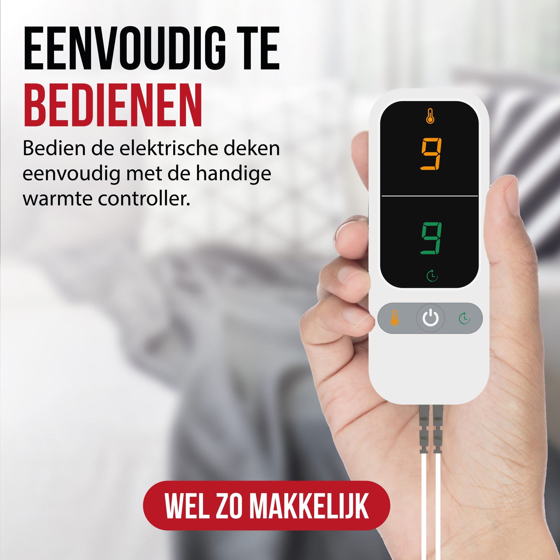 Set the timer for up to 9 hours of warmth. Each setting represents 1 hour, and the blanket switches off automatically for added safety. - XXL size (180x160 cm)
